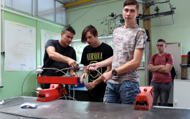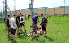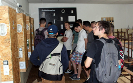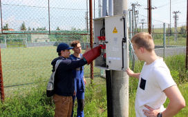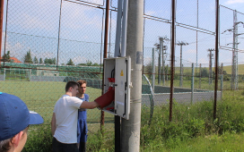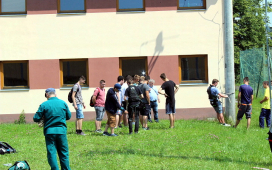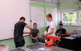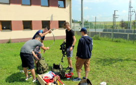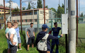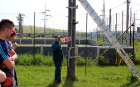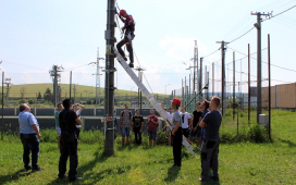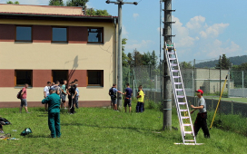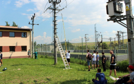 Žiaci SOŠE pod vedením majstrov odborného výcviku ukázali našim žiakom prácu vo výškach, pri ktorej použili špeciálne náradie a výstroj – vysokonapäťové skúšačky, izolačné tyče, rebríky, laná, prilby, rukavice, atď. Naši žiaci videli, ako sa zaistí pracovisko na spomínaných vedeniach, uzemní vedenie pomocou skratovacích súprav, ako aj technologické postupy pre výstup po rebríku a prácu vo výškach. V odbornej učebni študenti predviedli svoju zručnosť pri ukážke väzov na izolátoroch vn a nn.