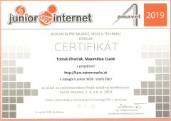 Vo finále tejto súťaže našu školu reprezentoval Tomáš Oharčák (II.B) s dvojčlenným tímom a v kategórii Junior WEB - starší žiaci získal certifikát za projekt http://kurz.vytvorznacku.sk.